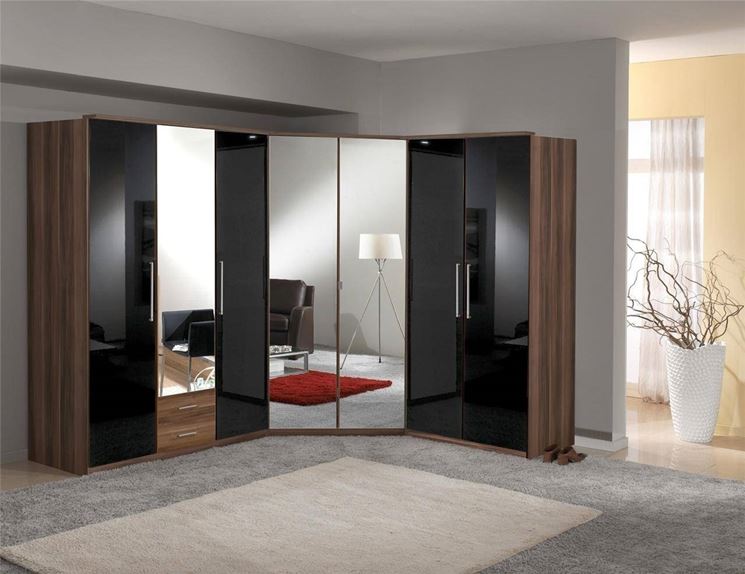 La decisione di mettere un armadio angolare nella propria camera da letto è dettata sia da motivi di spazio che da motivi di gusto personale. Un armadio angolare fa un bell'effetto e da continuità alle pareti dell'ambiente. Generalmente la parte dell'angolo è obliqua, però esistono armadi che seguono le pareti della stanza formando un angolo retto; questi armadi sono molto belli, però hanno l'aspetto negativo di essere poco funzionali e meno capienti degli altri. Si può scegliere un armadio ad angolo retto solamente per una stanza piuttosto grande, perchè bisogna tenere in considerazione le dimensioni totali del mobile. La profondità minima è di 36 cm e occorre anche lo spazio necessario per aprire le ante. La zona angolare deve avere una superficie che sia almeno di 105 × 105 cm, mentre l'altezza dell'armadio non può essere inferiore a 2.30 metri. Per scegliere il tipo di armadio angolare oculatamente, bisogna prendere le misure della stanza e possibilmente fare un disegno su carta. La scelta è condizionata anche dalla varietà di modelli disponibili in commercio, che è molto ampia. Tutti gli armadi sono componibili e le proposte dei mobilifici si possono personalizzare e adattare alle esigenze dei clienti. Prima di andare a visitare qualche negozio, bisogna avere ben chiaro in testa il modello di armadio e lo spazio a disposizione nella stanza dove poterlo montare comodamente.