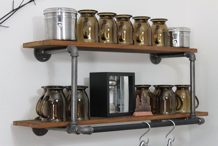 tubi del gas, stabilite quale dovrà essere la forma delle vostre mensole e assemblateli con i raccordi per realizzare una struttura solida. Forate la parete, segnando i punti in cui andranno fissati i tubi con l'aiuto degli appositi supporti, avvitate il tutto alla parete e infilate le tavole in legno...E il vostro lavoro sarà completato!